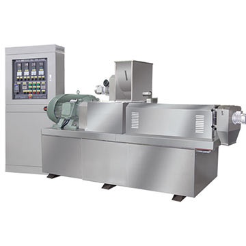 物料在機筒中經過螺桿的擠壓剪切和混煉,物料在高溫高壓下充分熟化經出口模具膨化,形成各種形狀的食品。擠壓機供料系統(tǒng),驅動系統(tǒng),旋切系統(tǒng)均采用變頻調速,動力強勁,運轉平穩(wěn);自動潤滑,強迫冷卻,確保擠壓機安全運轉